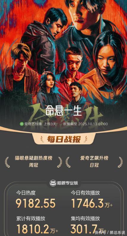 才播6集,热度破9100,终于有让我熬夜狂追的悬疑大剧了 三个男人缠了十年,还搞出连环杀局,明明都想过点简单日子,偏被命运绑得死死的。就说最近刚播的《命悬一生》,《开端》导演孙墨龙拍的,正午阳光出品,质量是真没话说!一上来连更 6 集,热度直接冲过 9100,拿了平台日冠还登顶飙升榜,今年悬疑剧的黑马怕是就是它了。